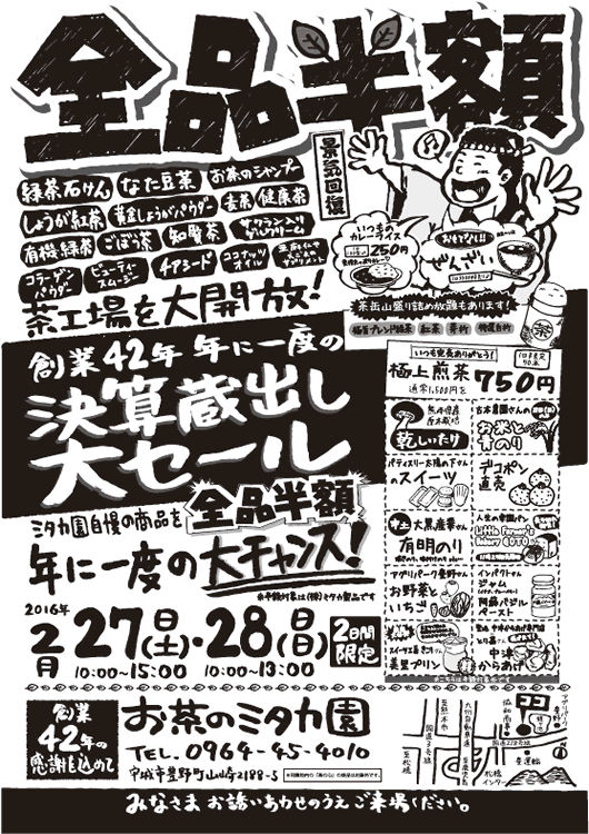 弊社製品以外にもしいたけ、ジャム、デコポン、パン、中津からあげ、のり、い ろんなスイーツ、いちご、野菜など盛りだくさん。